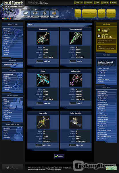 Bulfleet ist Massive ein Online Weltraum Strategiespiel. Es ist kostenlos und kann sofort gespielt werden. Man benötigt nur einen Web Browser, wie den Internet Explorer oder Firefox.