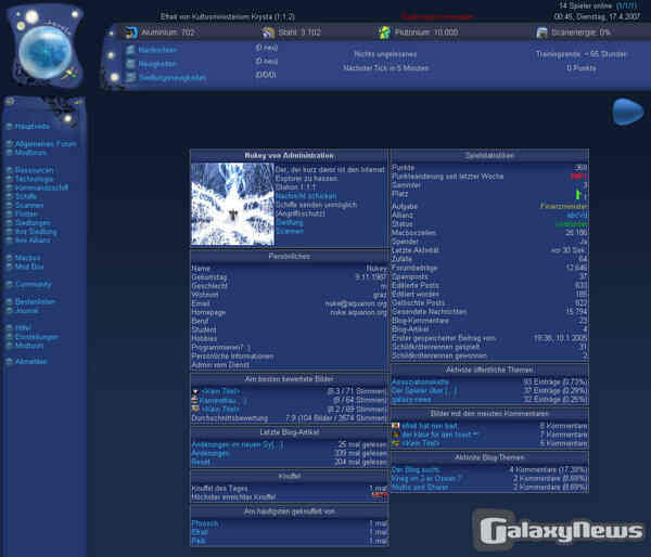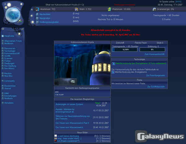 Wenn ein Spieler jetzt neu einsteigt, dann wird ihm wohl als erstes ein Bild auffallen, auf dem er seine Station abgebildet sieht. Die Hauptseite führt ihn durch die erste Phase des Spiels - und alles was so nicht klar ist, kann der Ausbildner beantworten, den der Spieler wohl als zweites bemerken wird. So bekommt nämlich jeder neue Spieler baldmöglichst eine Nachricht von seinem Ausbildner, der für alle Fragen bereitsteht.
