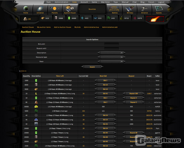 Another way to compete is on arenas. There are on the universe several arenas that work as follow: a player conquers the arena and is the current Gladiator. Another player can challenge the Gladiator for a fight, paying Orions (the game's currency). The winner stays at the arena and with the opponent's orions.