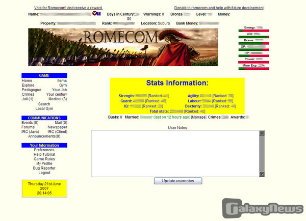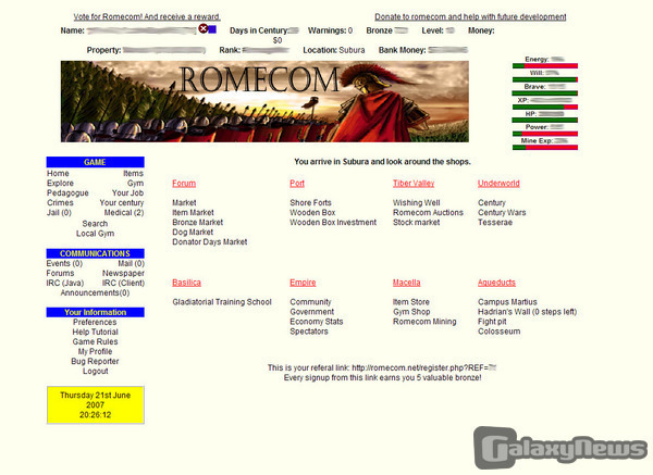 SuperDaz:Romecom is a web based RPG set in the Roman times. You can buy a Centurion and war other users for money or just try and rule the empire. It is also a great place to meet new people we have a great community and everyone is friendly.