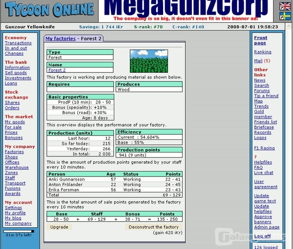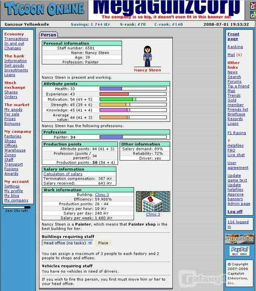 Doug Granzow: I've always had a fondness for the Tycoon-style games, and in fact back when I played Everquest, I often told my buddies that I wished their was a massively-multiplayer game like Everquest that was business-themed. Little did I know Tycoon Online was already in development, and when I eventually discovered it in 2005, I was instantly hooked. Anders Johansson, the original developer, pretty much captured exactly what I had been wishing for. I got involved in the game and started helping him out, and eventually he handed the reins over to me.