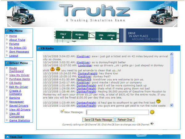 Rachel: Hi guys, I'm Rachel Smyth and I work for OMAC Industries, a Dublin, Ireland based publisher of Persistent Browser Games. I'm the lead developer on Trukz and I'm delighted to be working on such an interesting game.