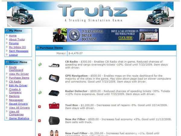 Rachel: Trukz is a trucking RPG. You get to play the role of a truck driver, travelling around North America and Europe, delivering cargo between cities and earning in-game money for your time. Once you save up your money from doing deliveries, you can purchase a range of equipment which helps you out, buy new trucks with better performance, and improve your cargo-carrying abilities.