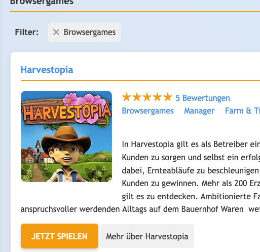 Nur ein Klick vom Eintrag direkt zum Spiel.